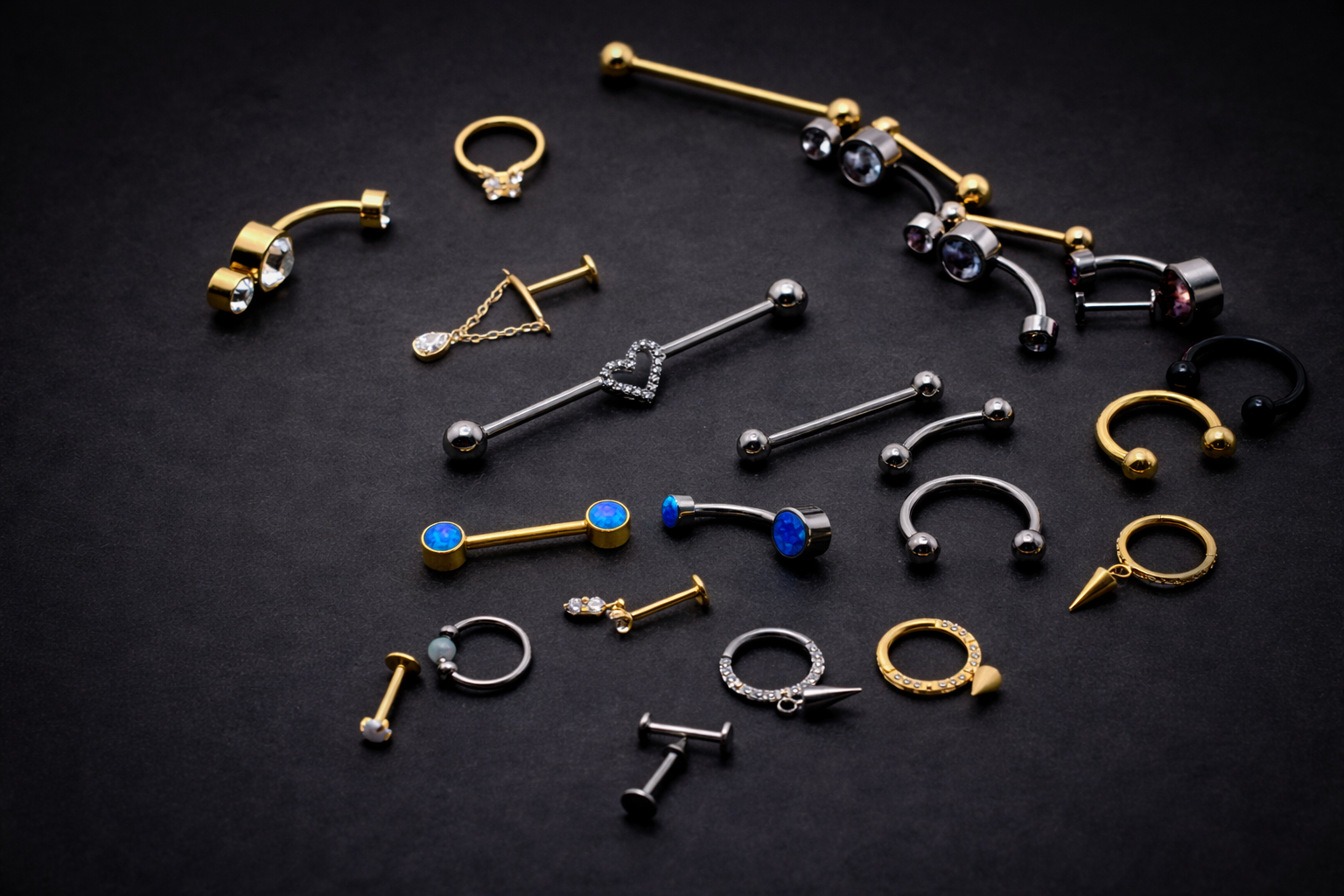 Twin Flat Bezel CZ Curved Barbell